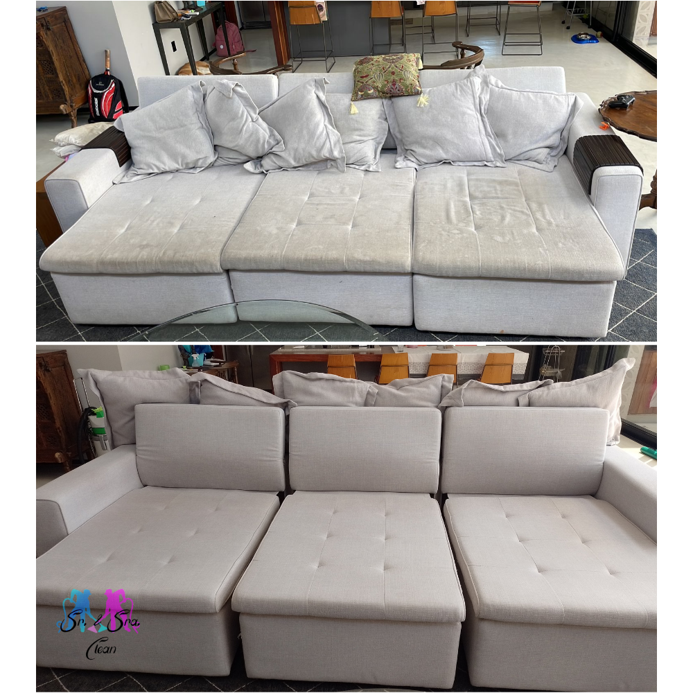 Sofá limpo, cheiroso e pronto para uso em poucas horas ✨